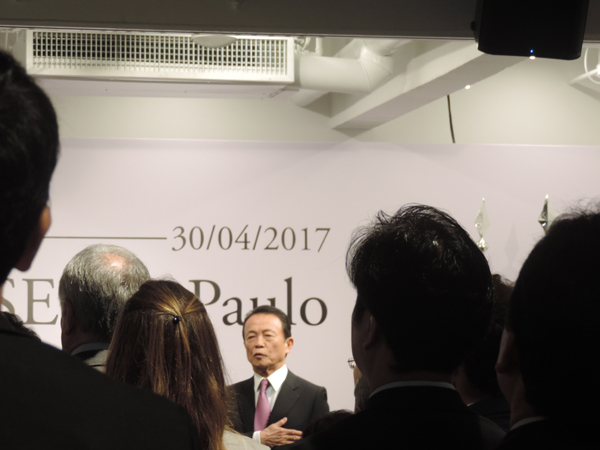 Taro Aso discursa na cerimônia de abertura