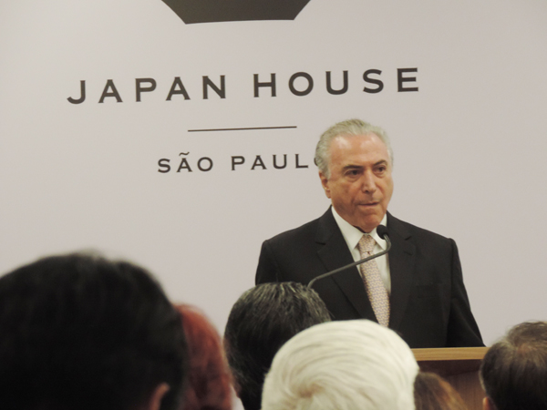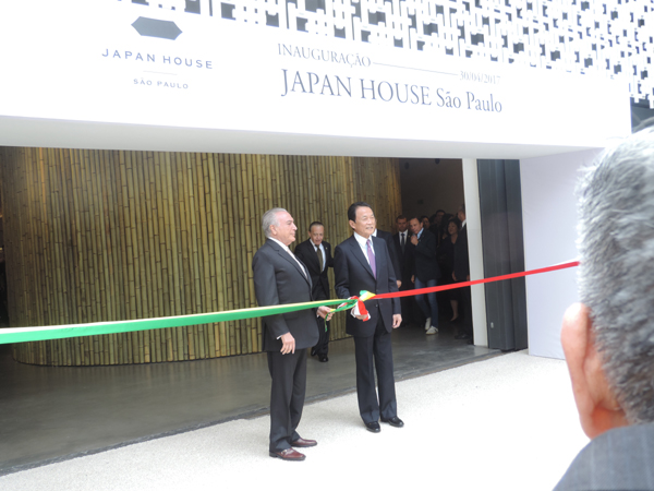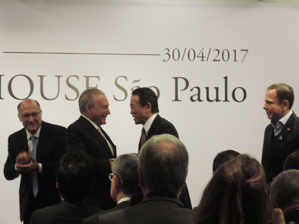 Michel Temer e Taro Aso no descerramento da fita de inauguração